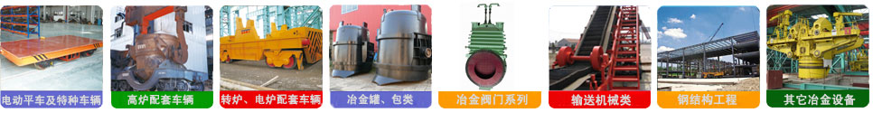 公司產(chǎn)品有ZT系列鐵水罐車、鋼包車、渣罐車、渣盤車、電動(dòng)平車、過(guò)跨車、鐵水稱量車、液壓傾翻車、廢鋼料籃車、中間罐車、修爐車、爐底車、鎳鐵礦熱爐料罐車、汽運(yùn)鐵水車以及各種鐵水罐(包)、鋼水包(罐)、渣罐、渣盤、中間罐、鋼包加蓋、龍門吊鉤、鋼包傾翻機(jī)、鋼包回轉(zhuǎn)臺(tái)等產(chǎn)品。
